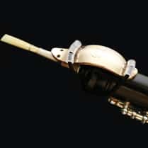 The LefreQue is a sound bridge that will make all wind instruments sound better. It consists of a bridge built up by two metal elements that will repair the sound breaches that occur in different parts of a wind instrument. You can put the lefreQue on your instrument using an especially developed elastic band. You do not need to change anything on the instrument itself.