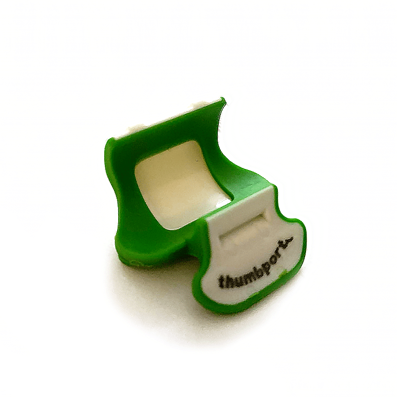 Before installing the Thumbport for the first time, wipe off the area with rubbing alcohol. This will reduce the likelihood of the Thumbport moving when in use. Because the contact surface is made of a soft plastic, it does not slide easily once in place on a clean surface. Snap the Thumbport onto the flute at around the F key where you would normally rest your thumb.